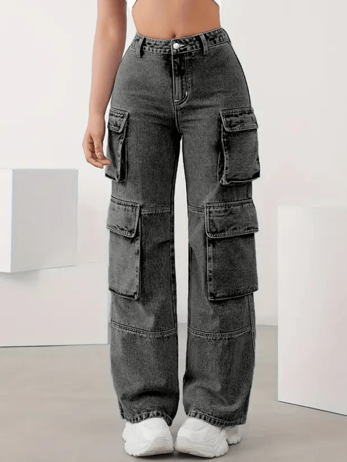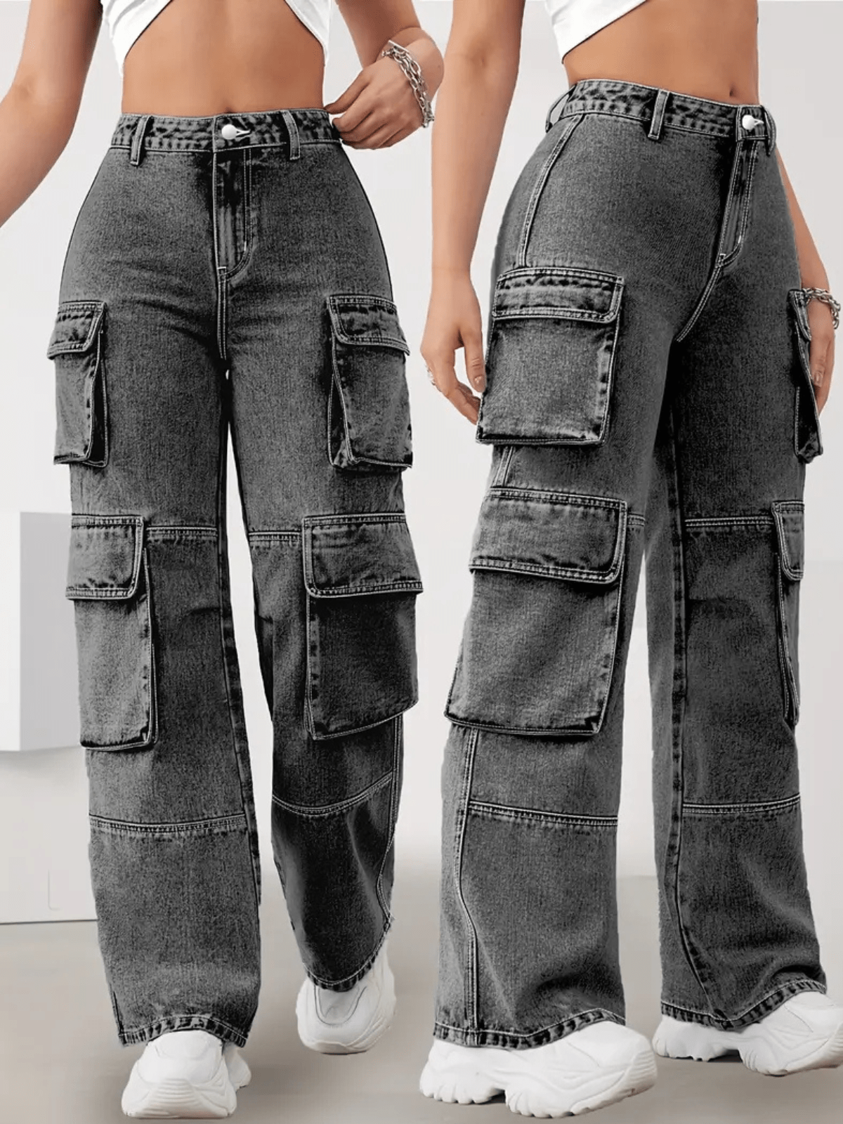 Calça Jeans Cargo Feminina – 4 Bolsos, Estilo Gringa, Conforto e Modelagem Casual para Uso Diário
