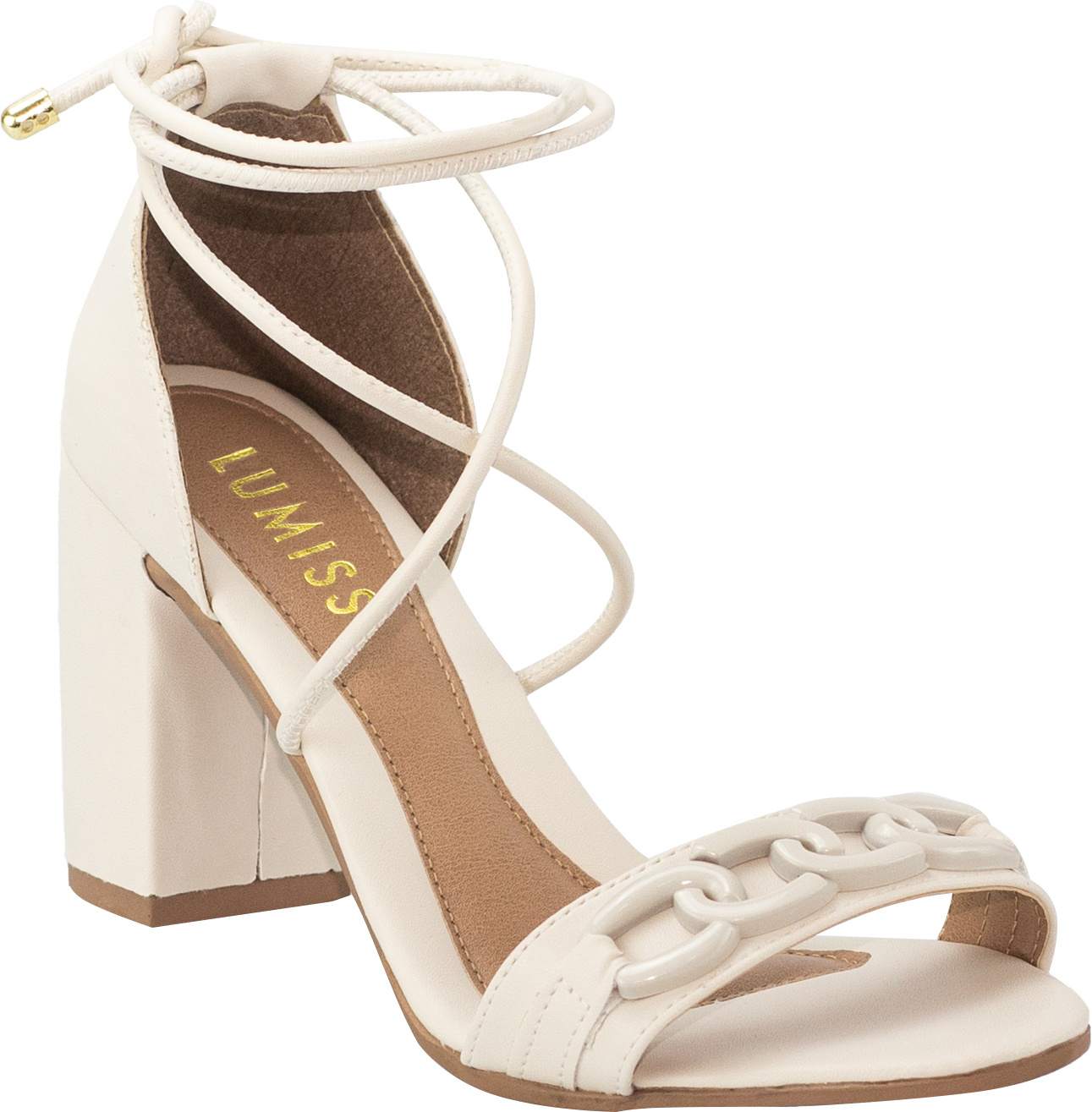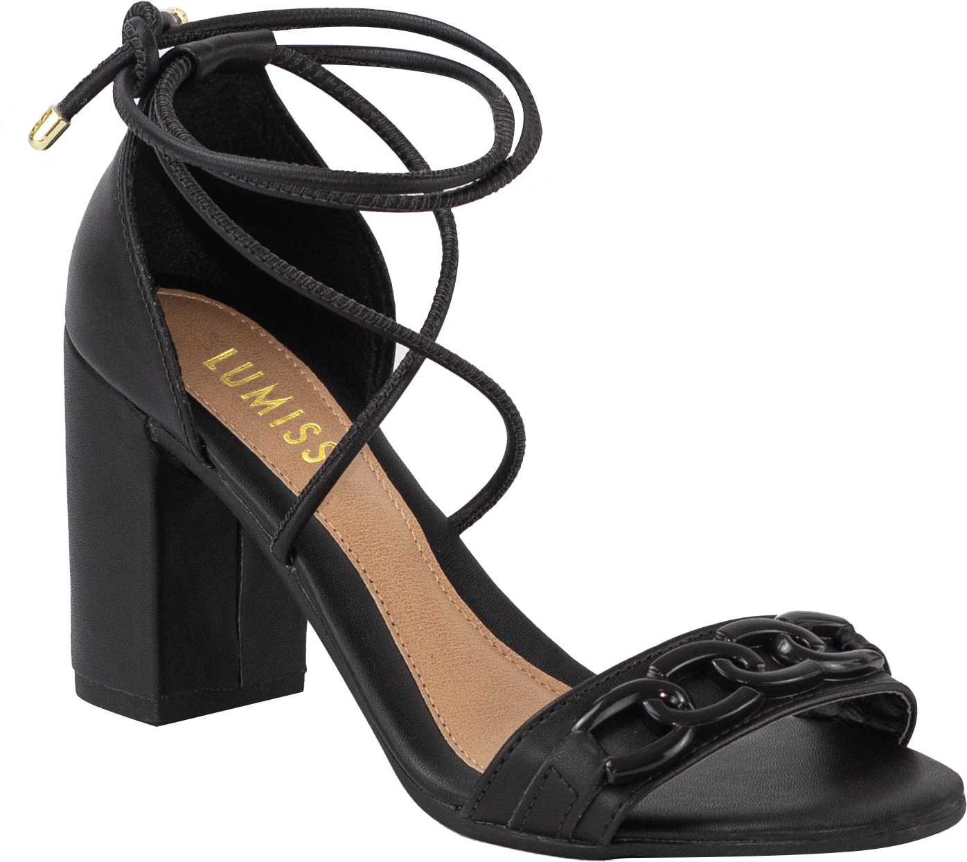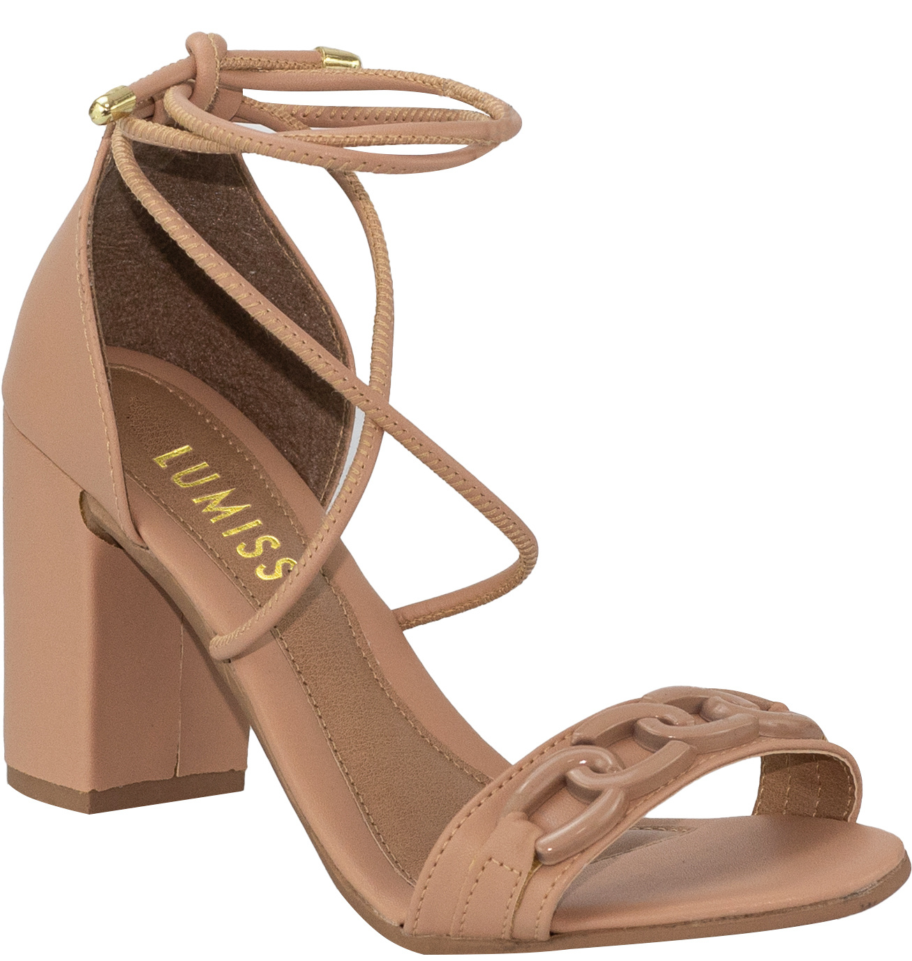 Sandália Feminina Lumiss Salto Alto Grosso – Confortável, com Corrente e Design Moderno Estilo Blogger